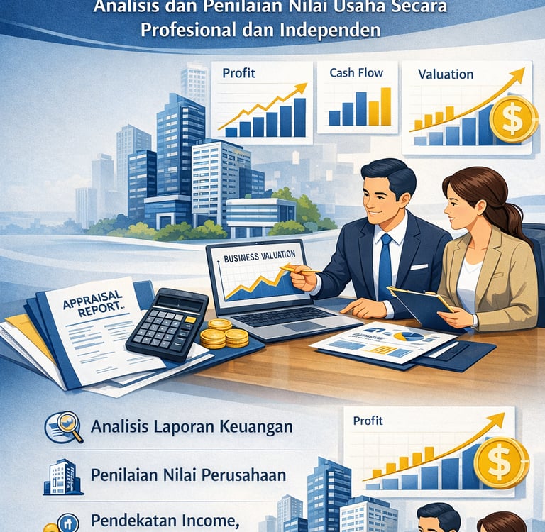 We provide independent, objective, and professional business valuation services, in accordance with the Indonesian Valuation Standards (SPI) and applicable regulations.